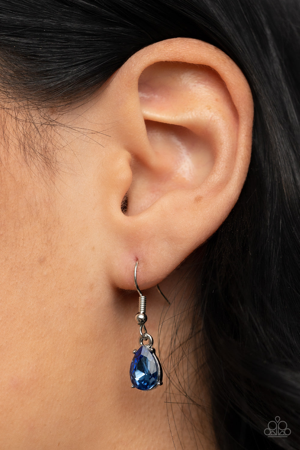 A twinkly trio of blue rhinestone petaled flowers bloom atop a leafy silver backdrop adorned in marquise cut white rhinestones, resulting in a timeless floral centerpiece below the collar. Features an adjustable clasp closure.