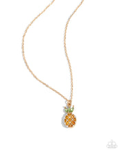 Featuring green marquise-cut gems, white rhinestones, and reflective yellow gems, a pineapple-inspired pendant glides along a dainty gold chain for a prized, polished look. Features an adjustable clasp closure.